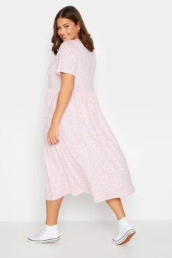 YOURS – Aangerimpelde Jurk Met Madeliefjesprint & Korte Mouwen In Lichtroze