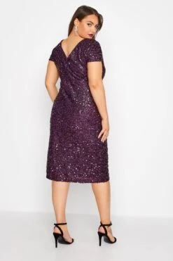 YOURS LONDON – Shift-jurk Met Pailletten & Korte Mouwen In Paars